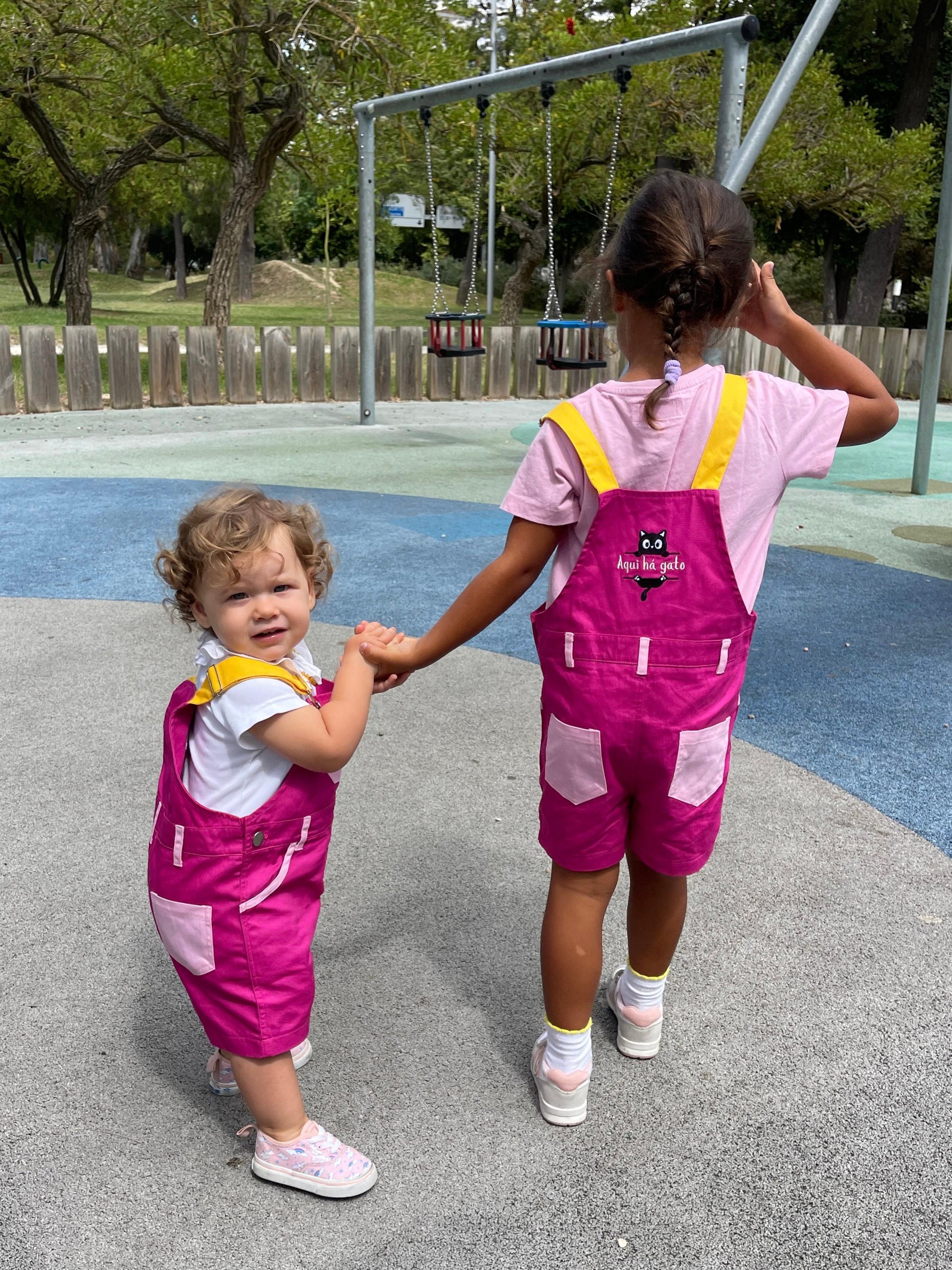 - Jardineiras Cor-de-Rosa, 100% algodão